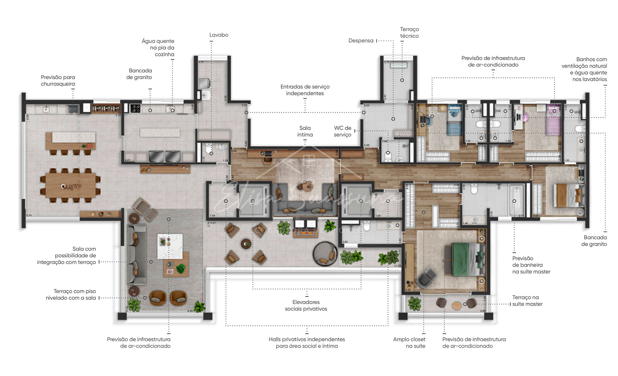 O projeto da AW REALTY incorpora modernidade ao oferecer espaços amplos e integrados que satisfazem as demandas de um público exigente, proporcionando não apenas uma residência, mas sim, um estilo de vida exclusivo.